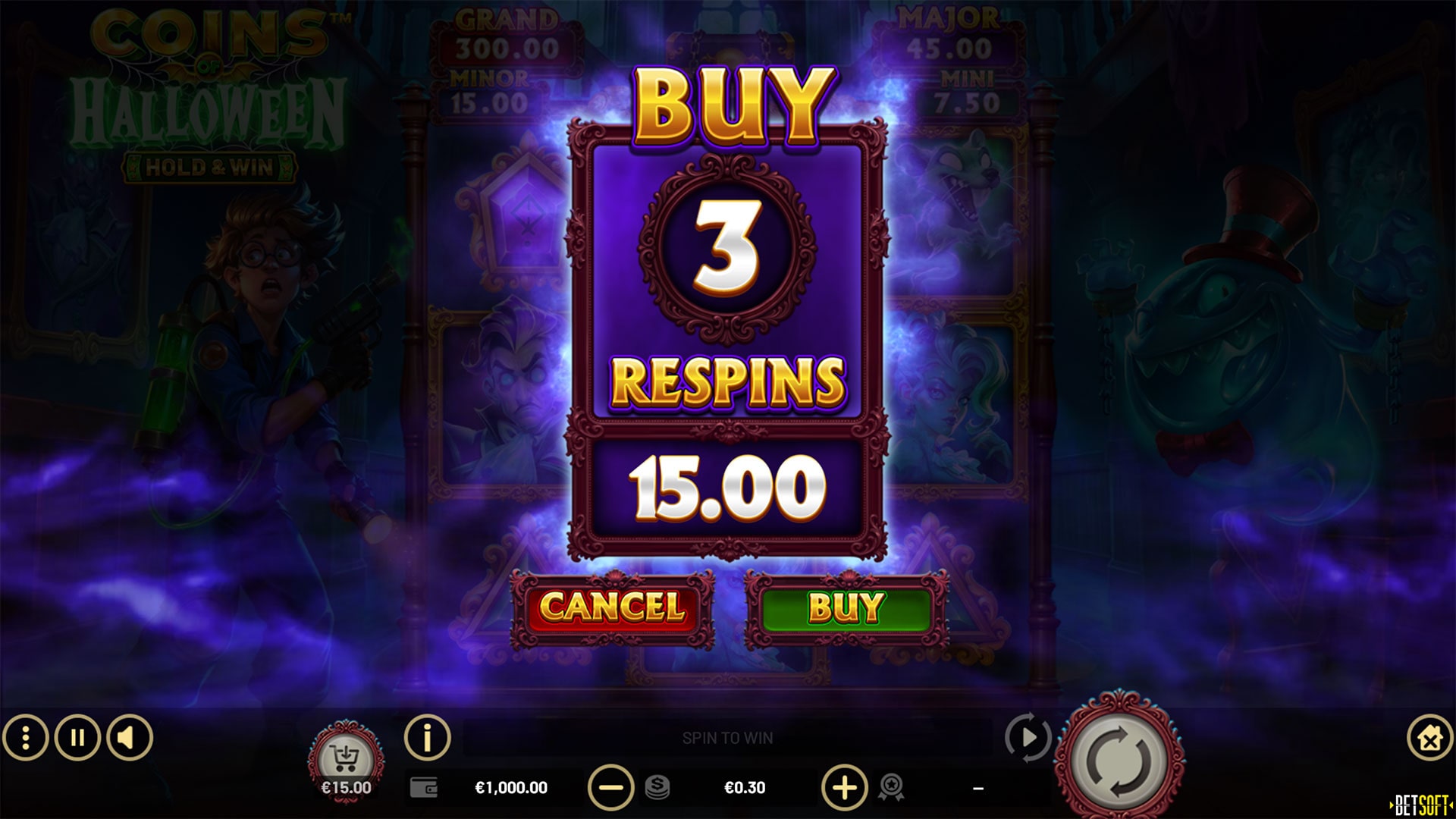 Click the BUY FEATURE button for instant access to HOLD & WIN FEATURE with 3 respins!