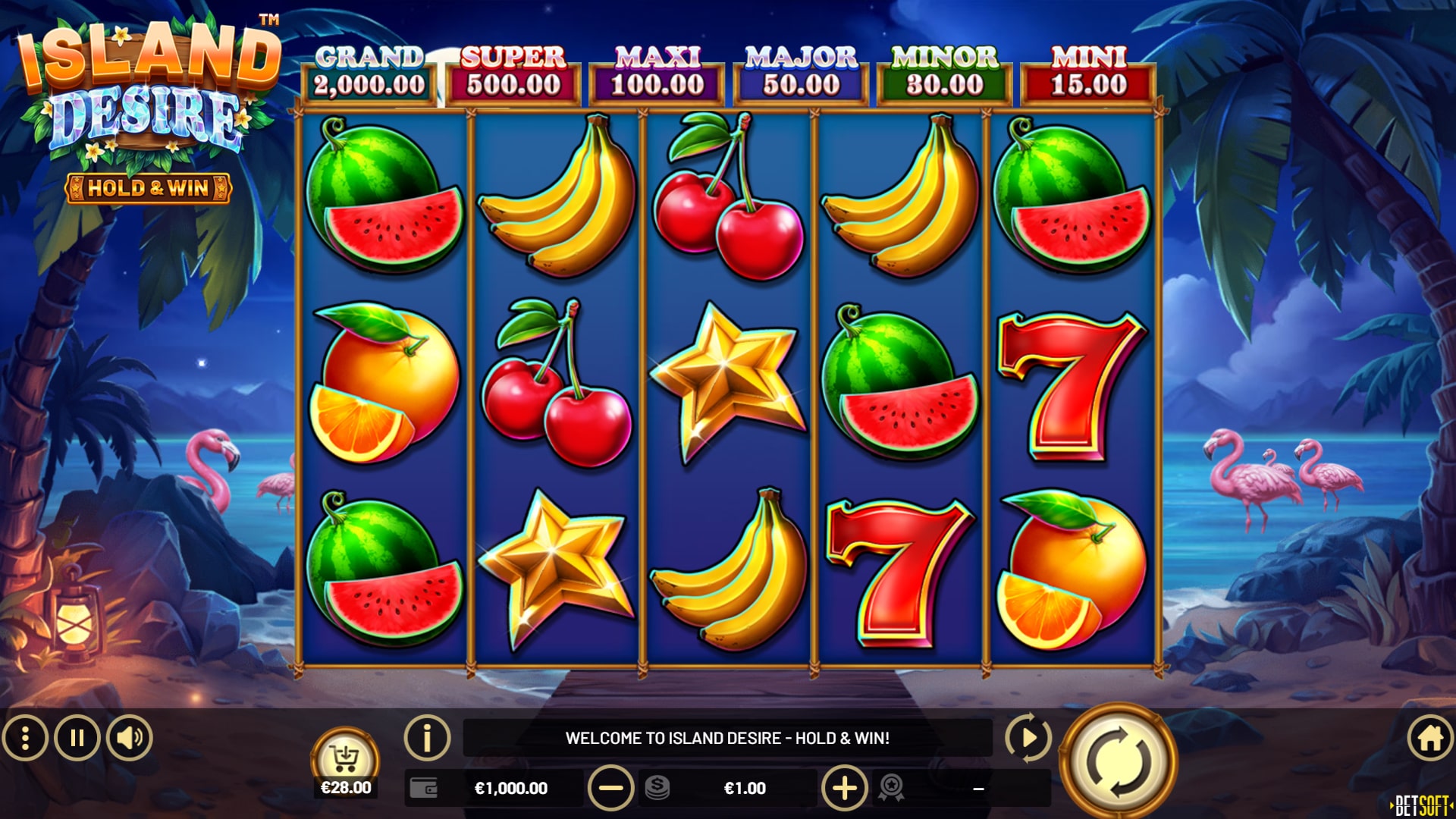 Plunge into a world of tropical pleasures with ISLAND DESIRE – HOLD & WIN™, a vibrant twist on the classic fruit machine. This 5-reel, 3-row video slot transports you to a world of untold delights. Offering 243 ways to win, it’s packed with thrilling features for the ultimate gaming experience.